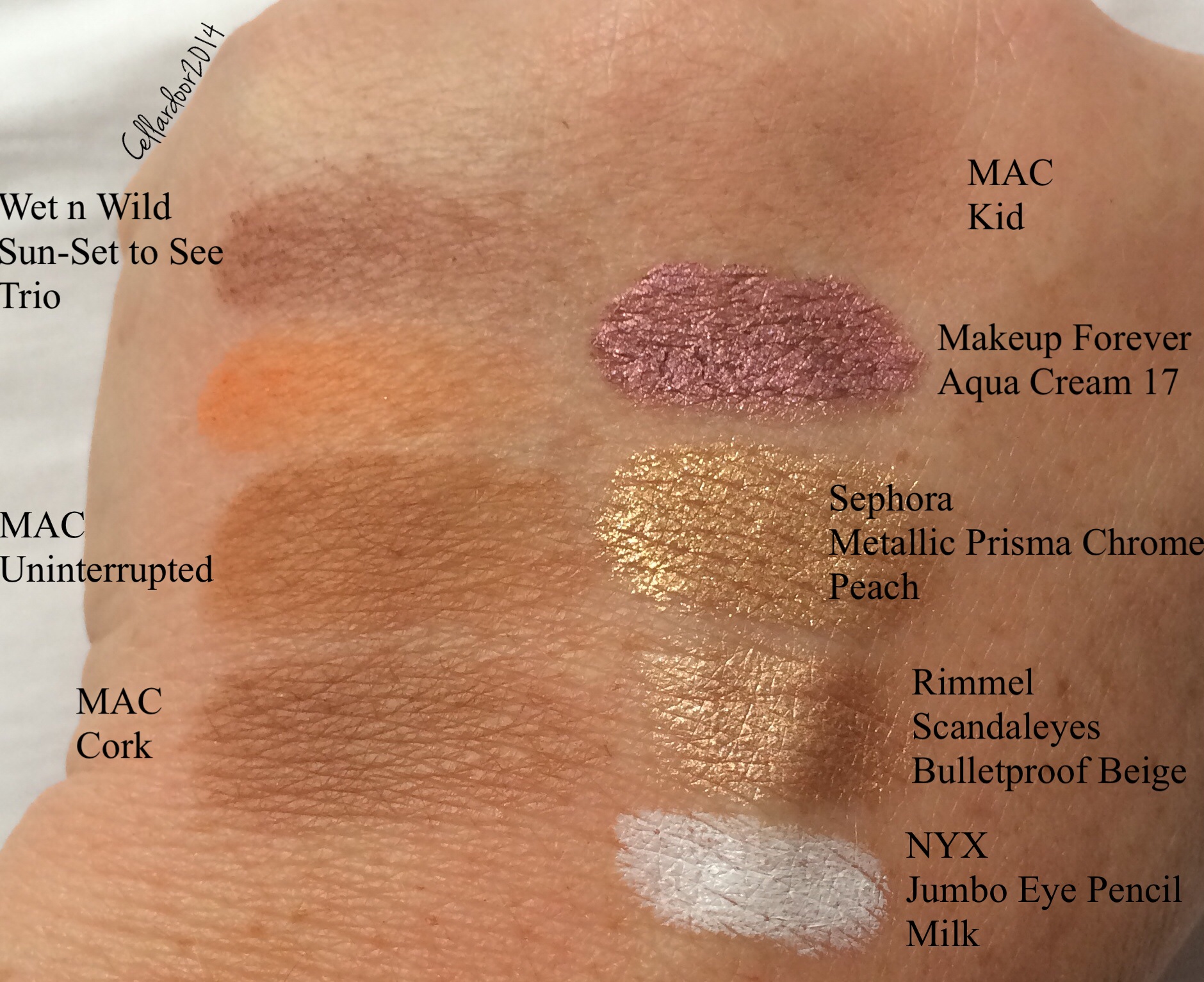 Wet n Wild trio in Sun-Set to See – I’ve only had this in my bag for about a week but I really like it. The brown is lighter than I expected it to be and can’t really be built up but the orange is really nice and the two shades blend together vey well.