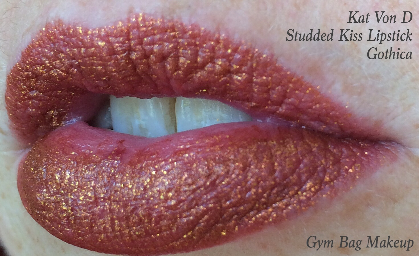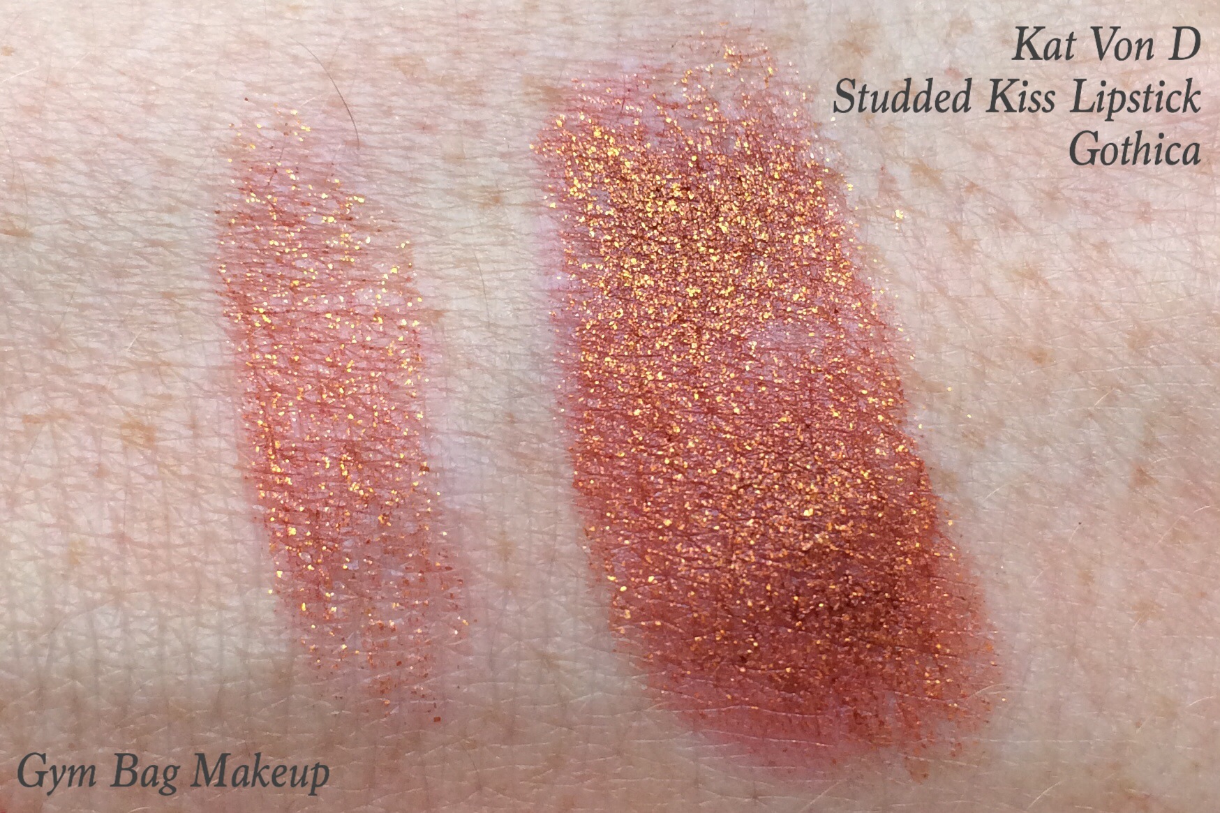Kat Von D Studded Kiss lipstick in Gothica– Bronze. Glitter. How cool is that right?! Pretty damn cool. The best part is that the glitter isn’t a noticeable texture on my lips. Gothica basically feels like a lipstick that isn’t incredibly smooth, but it definitely doesn’t feel like glitter particles either. Technically this does apply a bit patchy but because it’s such a glitter bomb, it kind of works and isn’t a noticeable flaw. The base lipstick is matte and thus, this wears pretty well. After 3-4 hours most of the lipstick is gone but the glitter remains and everything still looks pretty good. After about 4 hours, there is a bit of a glitter ring around the edges of my lips but re-application of this lipstick is pretty effortless and trouble free. Gothica is slightly drying, but nothing unbearable. Plus it smells like vanilla which is a plus in my book.