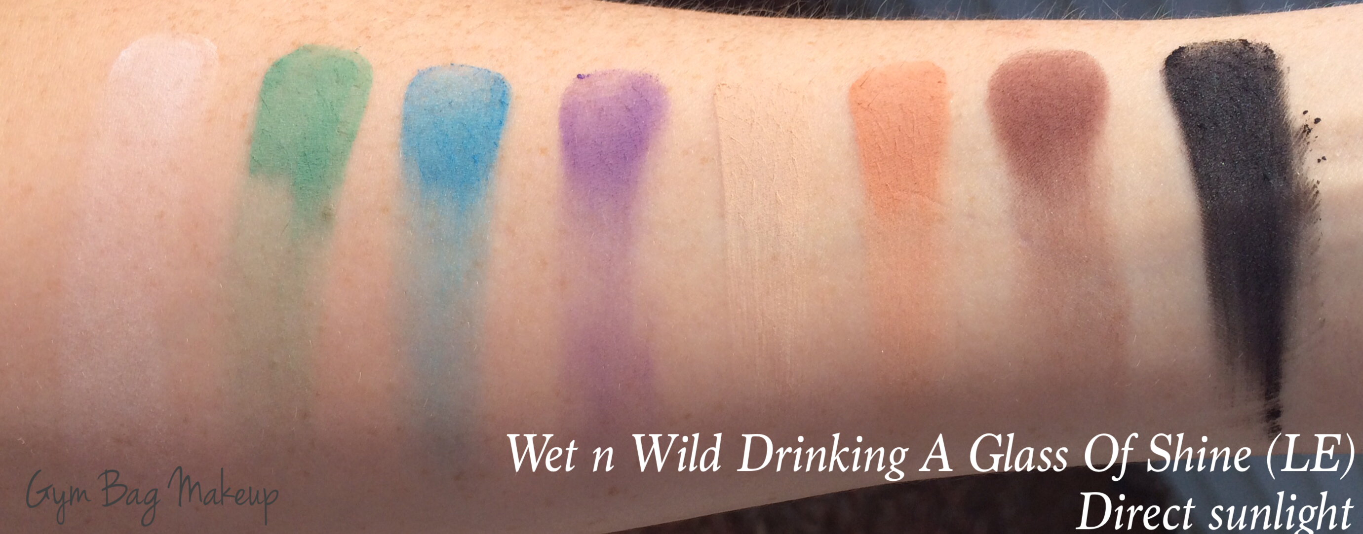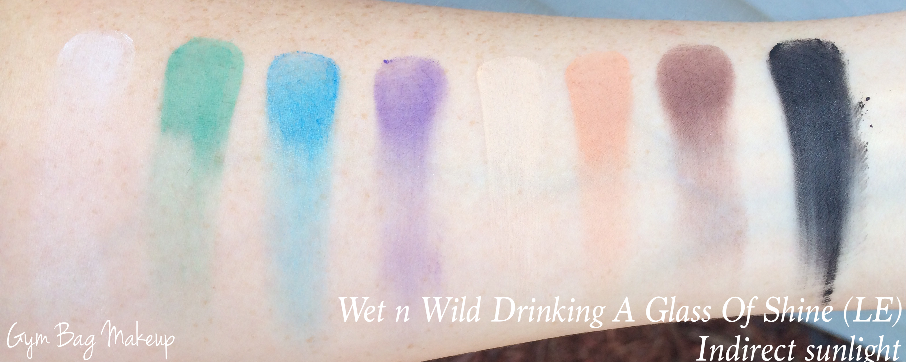 Drinking A Glass of Shine was a limited edition palette so I won’t dwell on it. It’s all matte, and similarly to Art in the Streets, this one is a little hit or miss on the quality. Generally it seems that WnW does pretty well with neutral matte shades but the colorful mattes are a little disappointing.