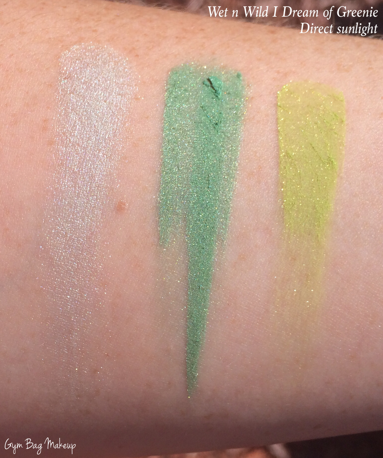 I picked up I Dream of Greenie just in case I ever needed a variety of green eyeshadow. I have no other explanation because I really don’t wear much green. The odd thing about this palette is that none of these shades really work well with the other shades in the trio. On their own they are all very pretty but I’m not sure you could create a look with them all together. Maybe I’m just not very creative.