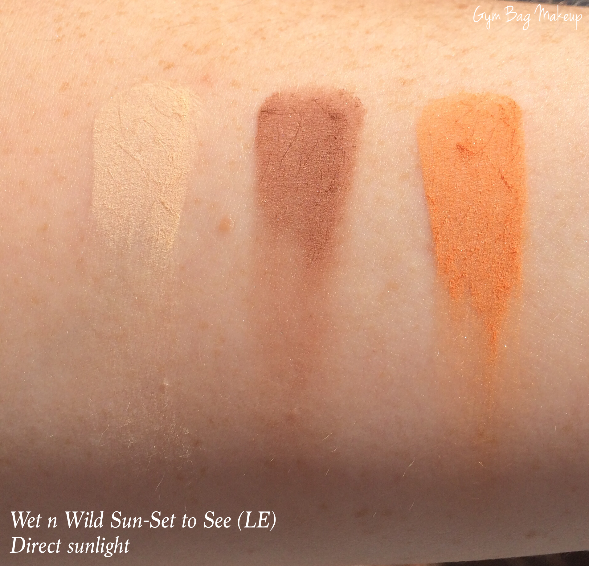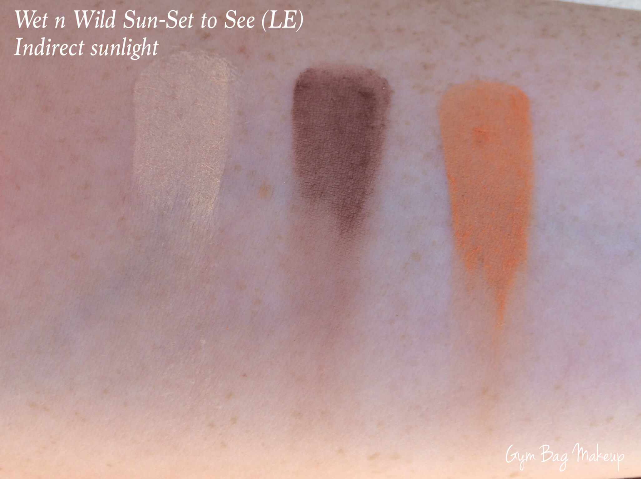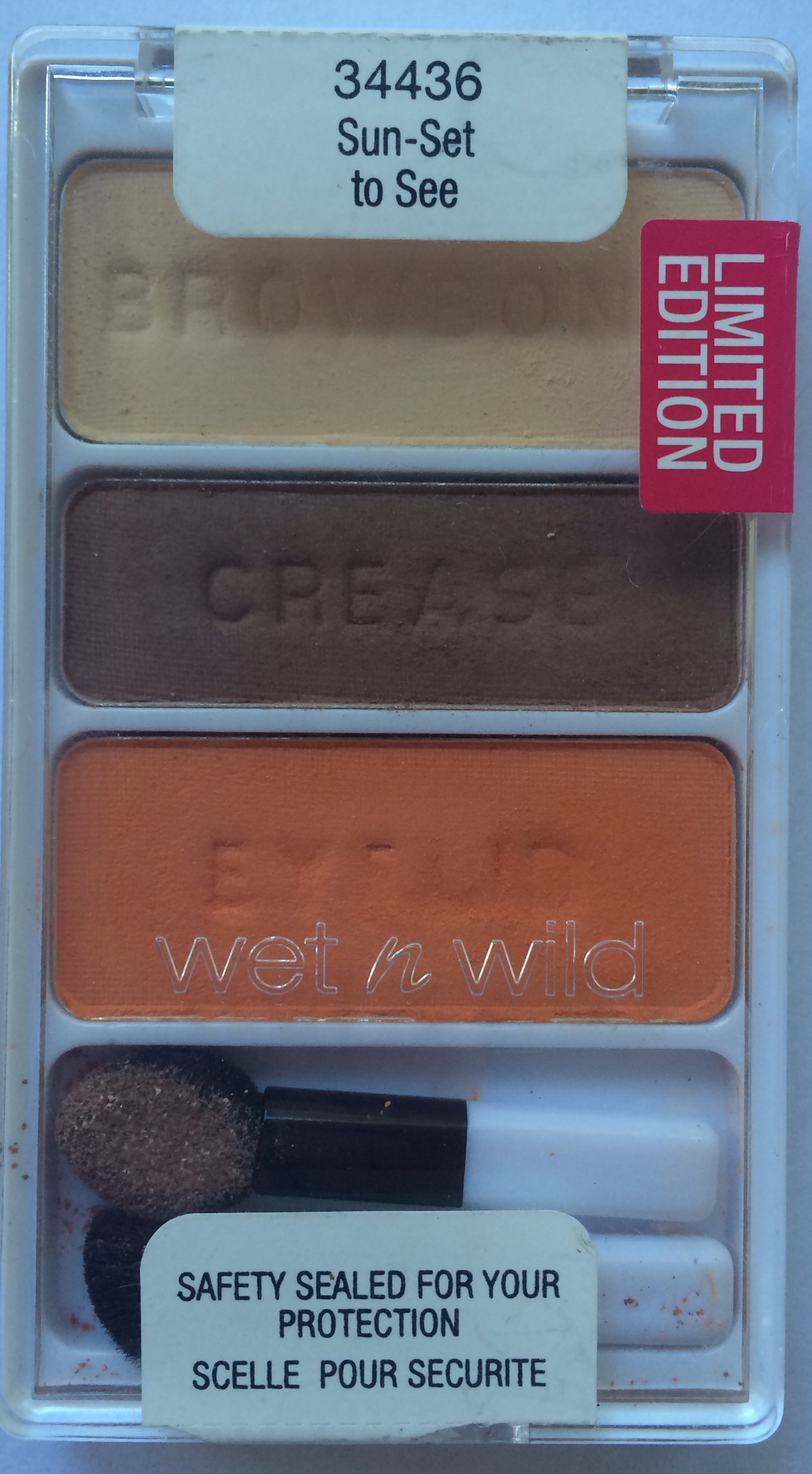 Sun Set to See is from the summer 2014 collection. As you can see, Wet n Wild puts out a fair number of limited edition products which is great if you can find them! Not so great if you missed them. One thing I have noticed though is that quite often, most of the colors from various palettes make it into future limited edition palettes. There is rarely a release that is so unique that you won’t be able to duplicate at least some of the shades.