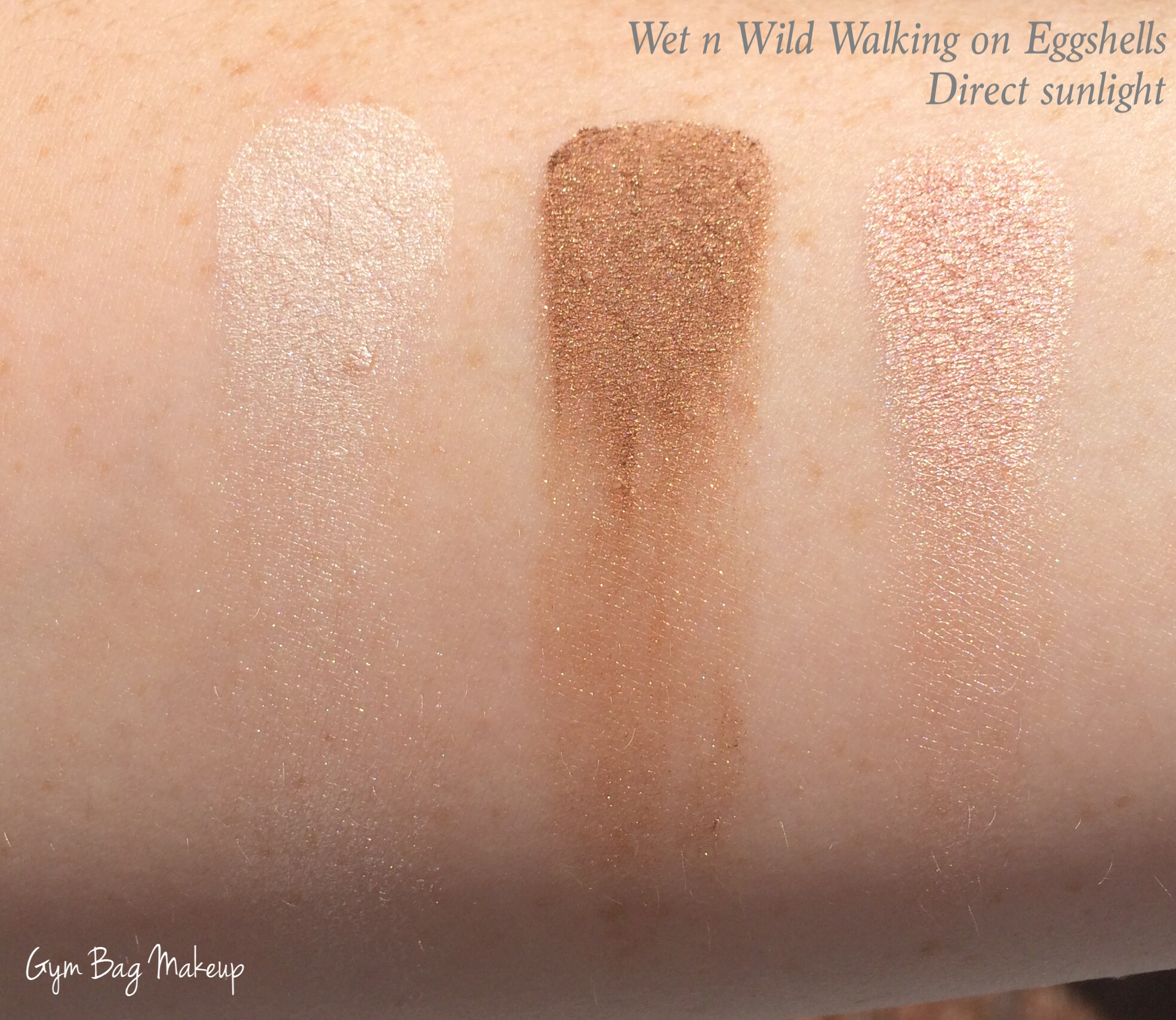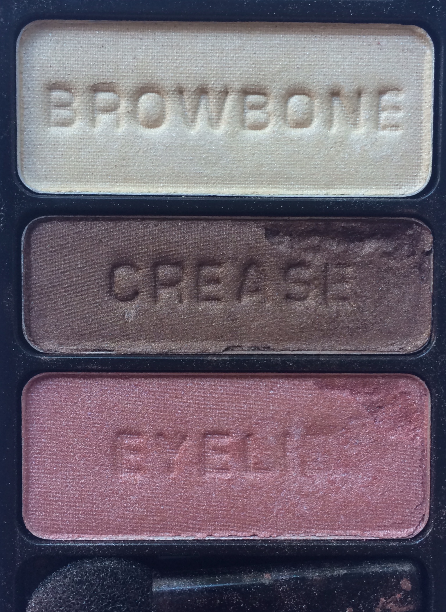 Sweet as Candy is part of the permanent line and has three basic but versatile shades. This one always reminds me of Neapolitan ice cream. Wet n Wild shadows do tend to be softer shadows. I like that for application but it does make them particularly prone to breaking, as you can see here.