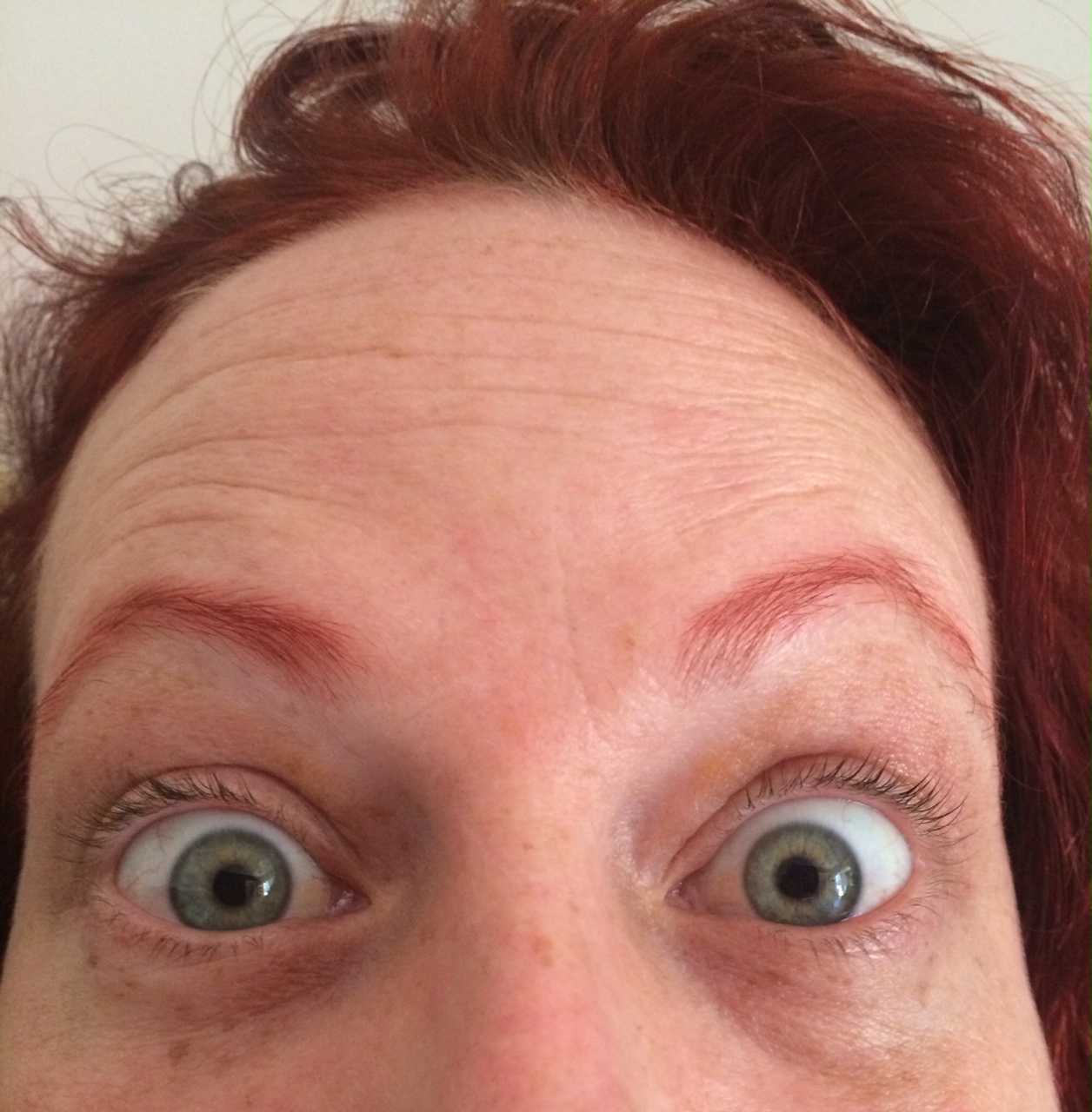 The rest of this post is not related to makeup…but yesterday I dyed my hair and normally I use dye on my brows but only leave it on for a maximum of five minutes. Well, I’m easily distracted and completely forgot that I had dye on my eyebrows so (brace yourself) THIS happened: