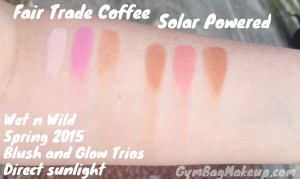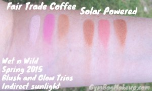 There is a third trio with a very wearable bronzer, light highlight and a very pretty pink blush. It looked gorgeous but I have blush and bronzers in similar shades so I didn’t snag it HOWEVER, after seeing Compassionate Beauty‘s swatches, I’m thinking I may need to go back to Walgreens.