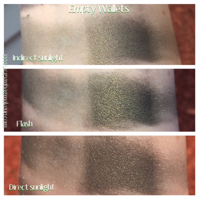 “Dark rich green with gold shimmer” Pretty accurate. This is another blackened shade but I find it just light enough that I can work with it.