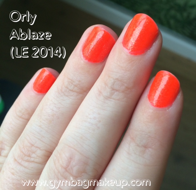 Ablaze actually has tiny golden flakes in it which is delightful. As you can see in the photos, this polish is actually so bright that my poor little iPhone camera just can’t handle it.