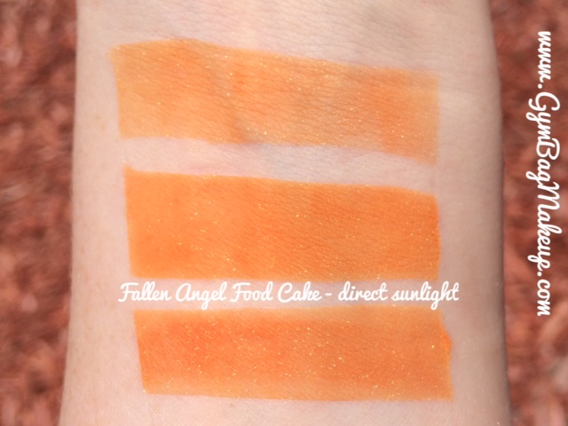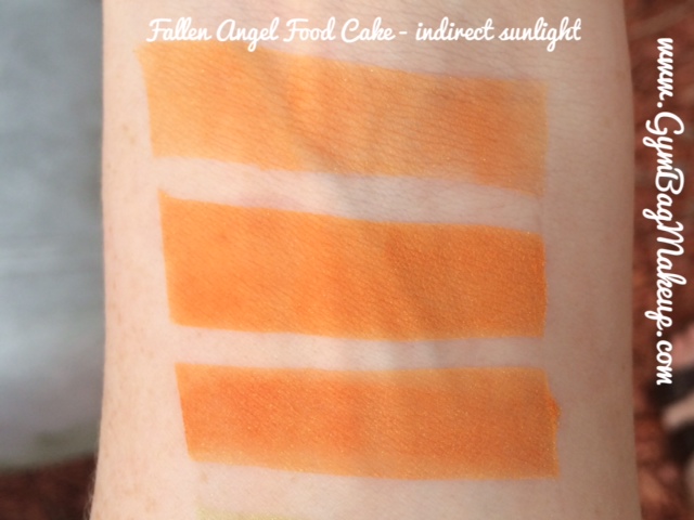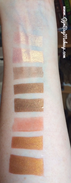 The top swatch is over bare skin, the middle swatch is over LORAC Behind The Scenes Primer and the third swatch is over Darling Girl Glitter Glue. All swatches were applied with a concealer paddle brush and more or less patted into place and blended around the edges. That’s basically how I would apply these shadows to my eye.