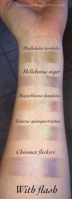 The theme is perfection. I felt like there was a great mix of flora and fauna represented and I loved it. As far as the actual shadows go, this isn’t a collection that you would purchase and think “Hey, now I don’t need any other eyeshadows in my life!” (Well maybe you would, in which case, you go with your bad self!). Every shade is sparkly and glittery. There is an entire rainbow available and I LOVE that!