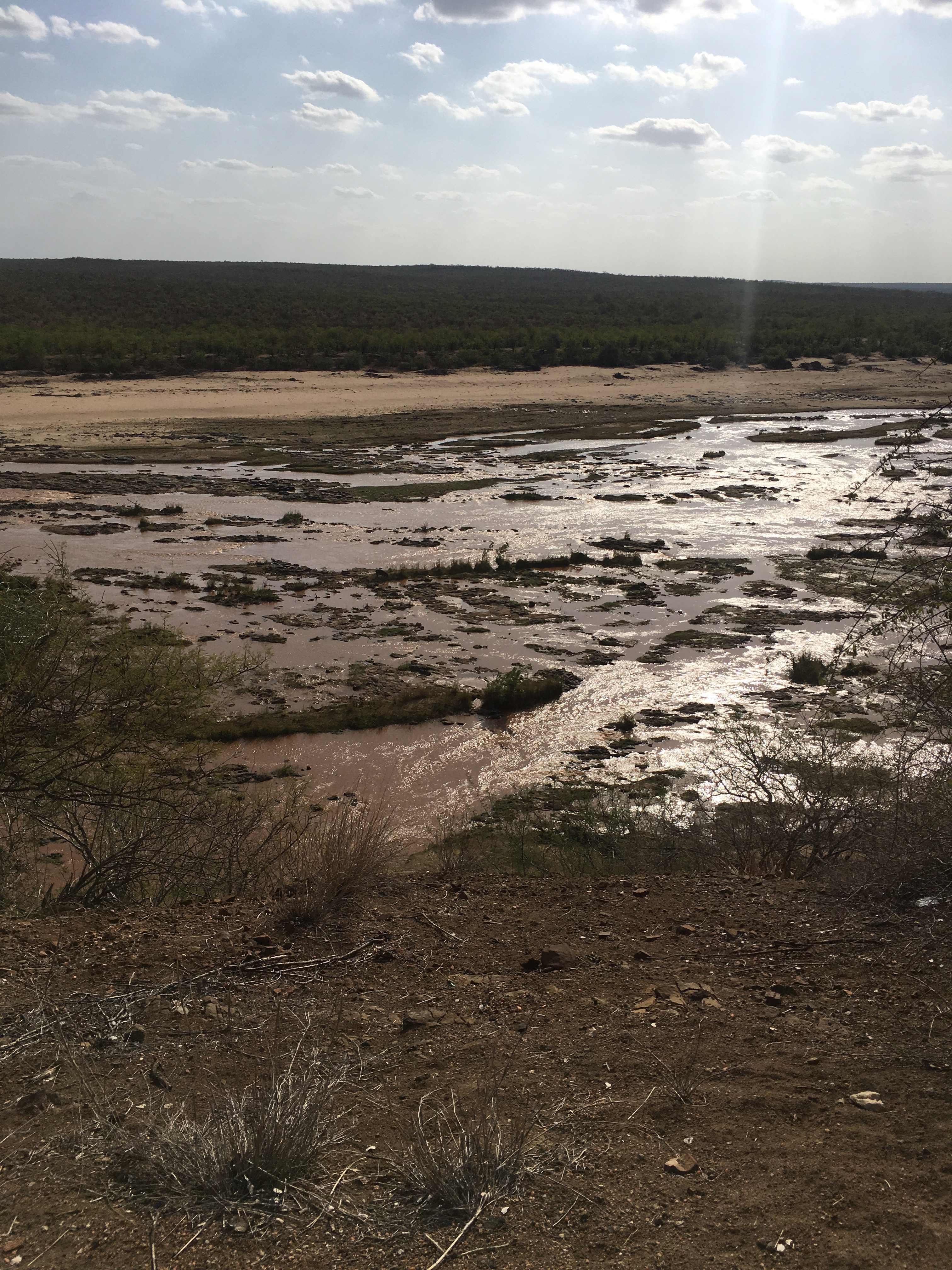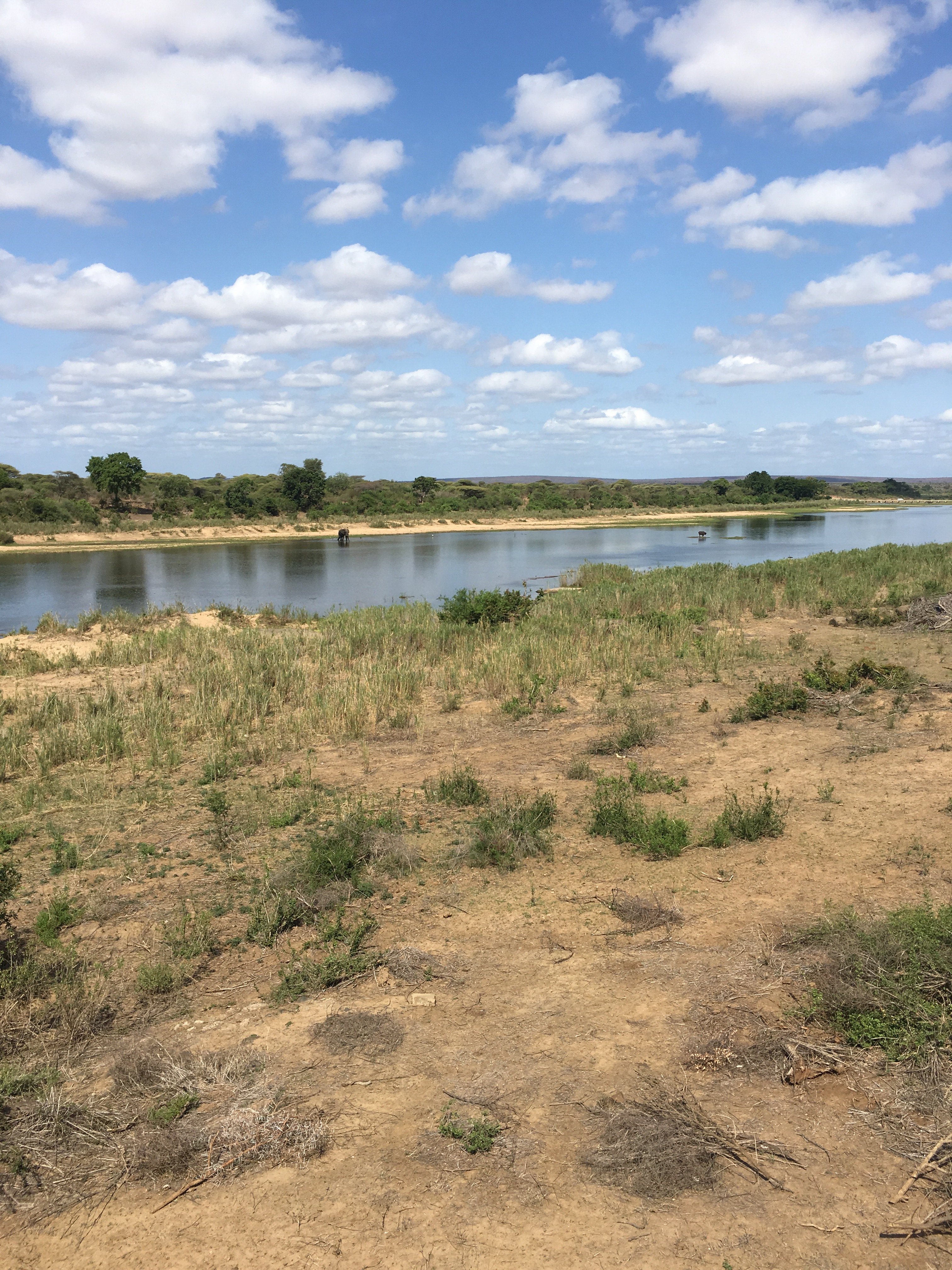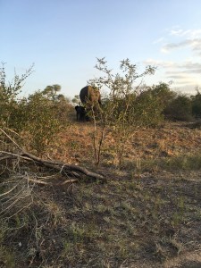 This was the view from the restaurant where we ate lunch. Iconic South Africa with the water buffalo and the elephant crossing the river.